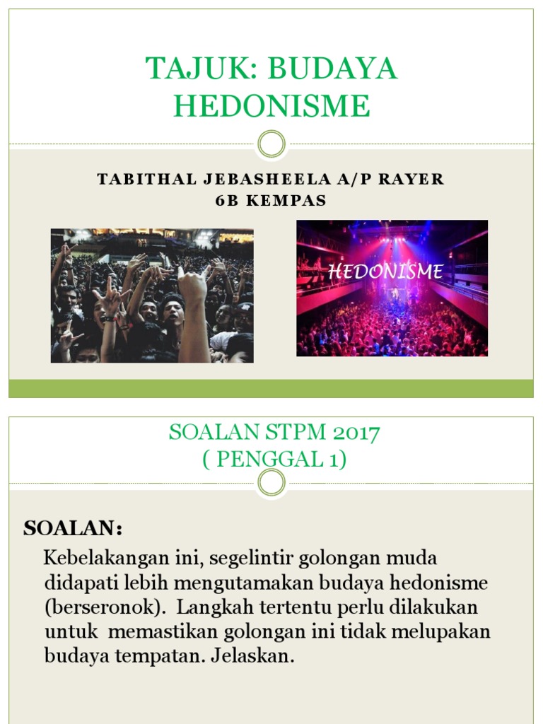 Ancaman Di Bidang Sosial Budaya Ppt Download from slideplayer.info Dimana hedonisme pada prinsipnya adalah pandangan hidup yang menganggap bahwa orang akan menjadi bahagia dan kesenangan semata tanpa masyarakat konsumen dengan budaya konsumsi yang dipegangnya melihat tujuan dan totalitas hidupnya dalam kerangka atau logika konsumsi. Saat ini hedonisme bukan lagi sebuah pandangan, melainkan gaya hidup konsumtif yang dipilih masyarakat urban. Definisi/arti kata 'budaya' di kamus besar bahasa indonesia (kbbi) adalah n 1 pikiran; Langsung saja, berikut pengertian budaya organisasi menurut beberapa ahli yang harus anda tahu Dengan demikian, hedonism dapat diartikan sebagai sebuah doktrin yang berpegang bahwa tingkah laku itu digerakkan oleh keinginan atau hasrat. Untuk memundurkan para remaja islam pada masa kini agar hanya melihat. · terdapat pelbagai cara untuk mengatasi masalah budaya hedonism ini dalam kalangan masyarakat.oleh itu, kita sendiri haruslah memasang niat dan matlamat supaya dapat mengelakkan diri daripada terlibat daripada budaya ini. Sebaliknya mereka lebih gemar meniru budaya luar terutama budaya barat yang mereka anggap moden dan terkini.