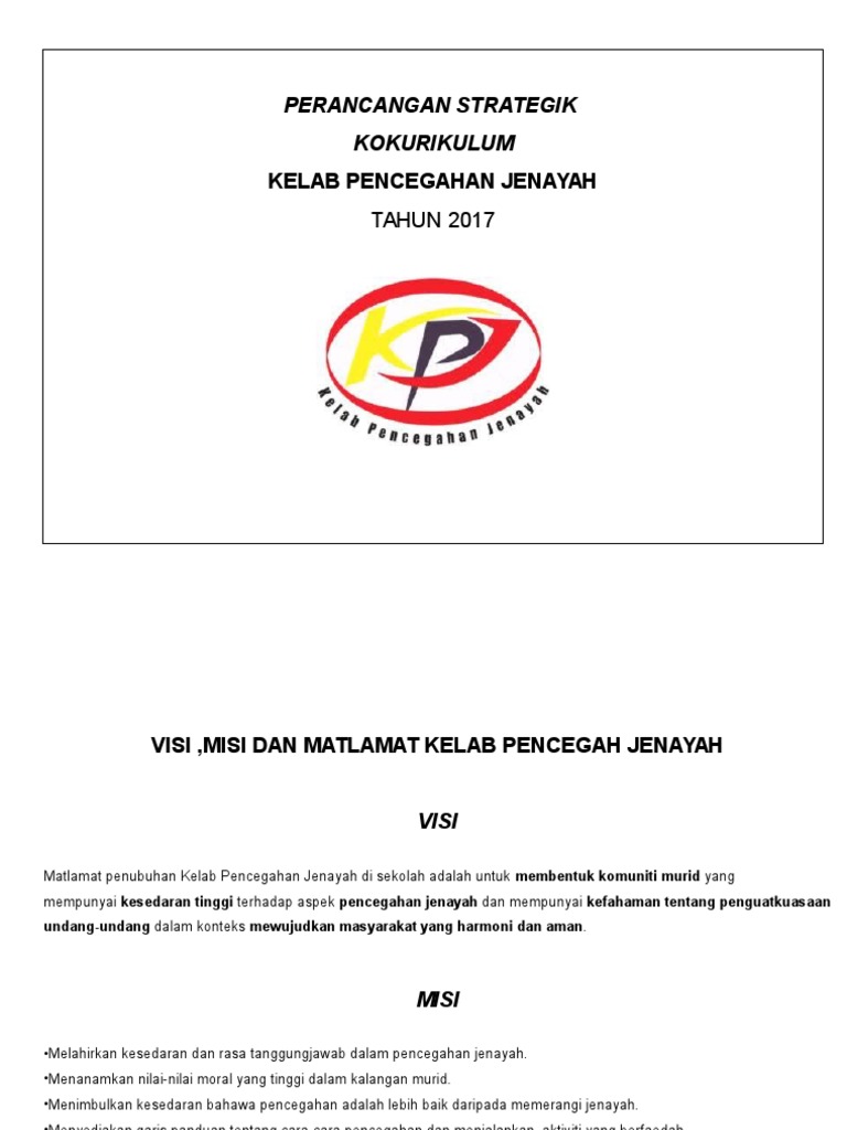 Perancangan Strategik Kelab Pencegah Jenayah 2017 2019 from imgv2-2-f.scribdassets.com Berikut adalah maksud bagi logo kelab pencegahan jenayah: 1.huruf k.p.j bermaksud singkatan kepada kelab pencegahan jenayah. Mencegah lebih baik daripada memerangi. Latar belakang kpj kelab pencegahan jenayah ialah kelab yang ditubuhkan di semua sekolah rendah dan sekolah menengah kerajaan merujuk kepada surat pekeliling ikhtisas bil 5/2006, kementerian pelajaran malaysia. Kelab pencegahan jenayah ialah kelab yang ditubuhkan di semua sekolah rendah dan sekolah menengah kerajaan merujuk kepada surat pekeliling ikhtisas bil 5/2006 jadilah generasi bebas jenayah. Kelab pencegahan jenayah sk convent sentul (2). Peranan ahli kelab pencegahan jenayah. Bulatan berbentuk mata melambangkan ahli kelab yang sentiasa prihatin terhadap perkembangan persekitaran secara.